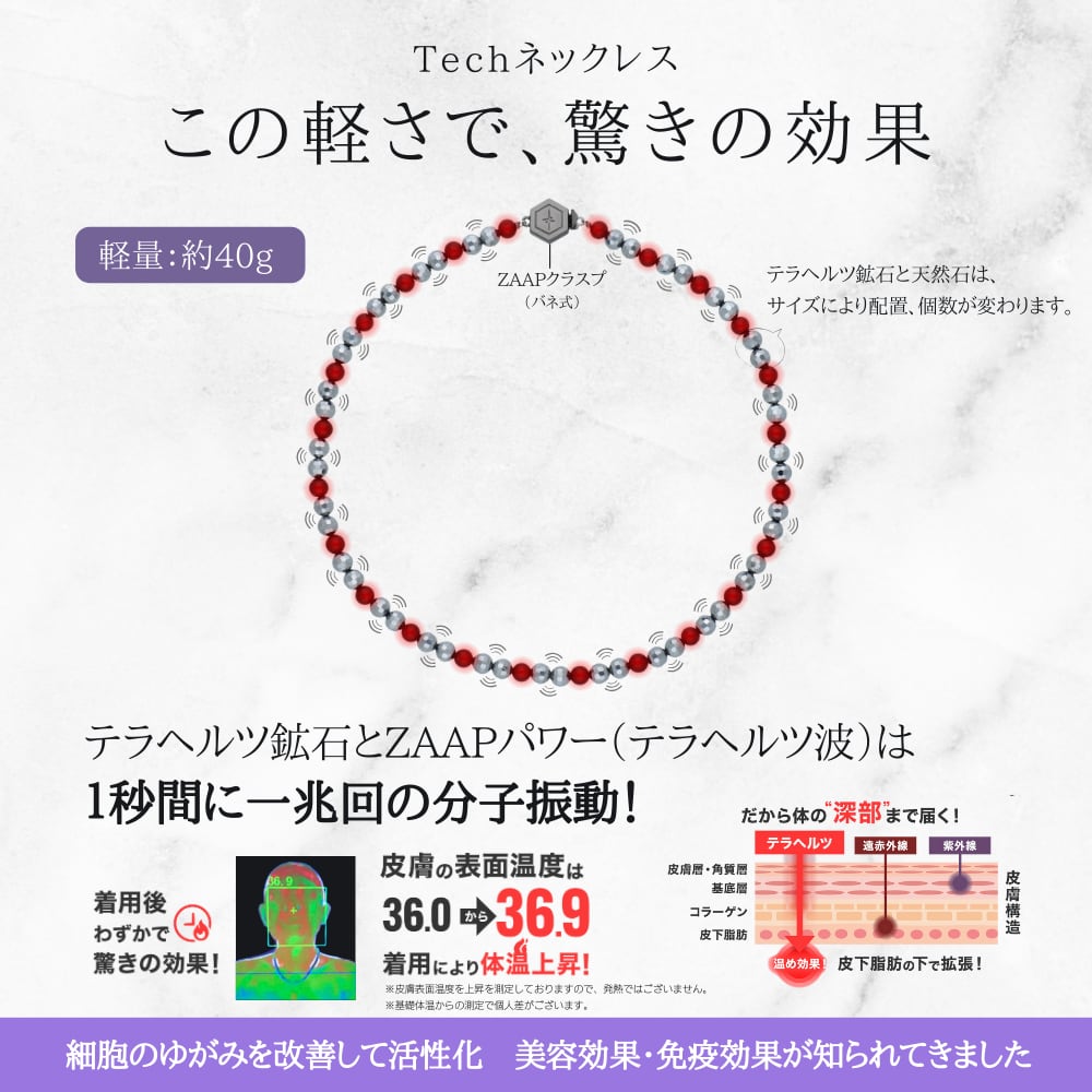 「ZAAPTech」とは、独自の技術で天然石に微細な振動を与え、テラヘルツ波を放ちます。